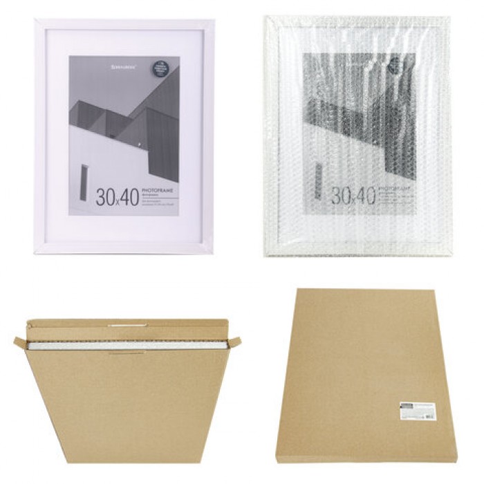 Рамка 30х40 см с паспарту 21х30 см небьющаяся, багет 20 мм, пластик, BRAUBERG "New Age", белая, 391278