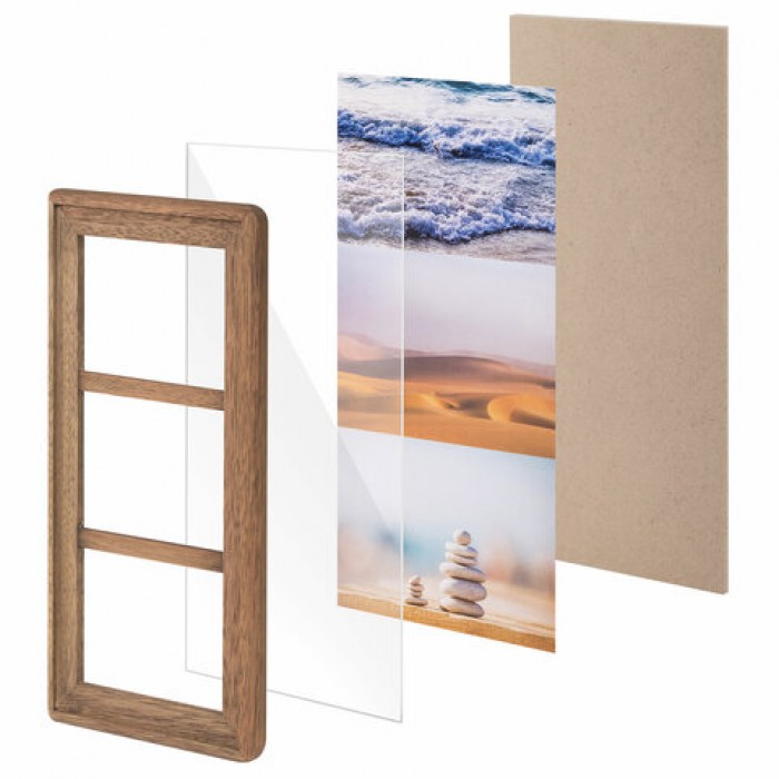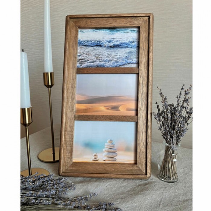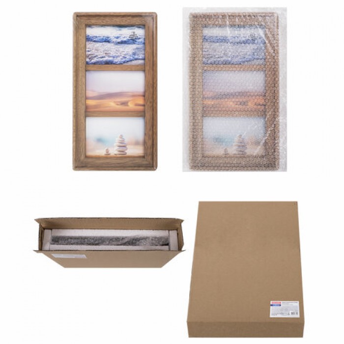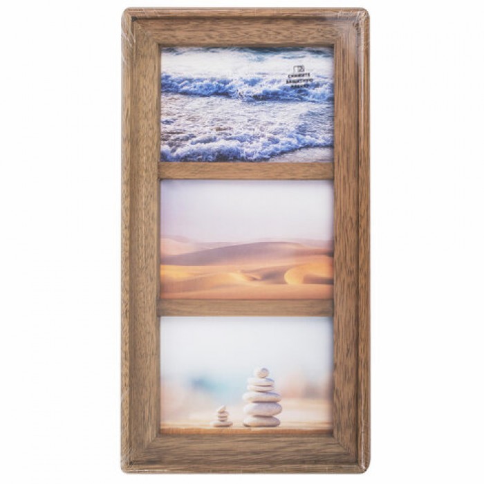 Рамка из мангового дерева BRAUBERG LOFT TRINITY, 3 фото 10х15 см, стекло, 20х35,5 см, 391282