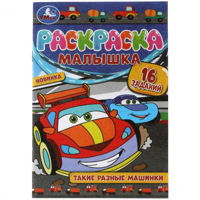 Раскраска-малышка с заданиями А5 Умка "Такие разные машинки", 8стр.