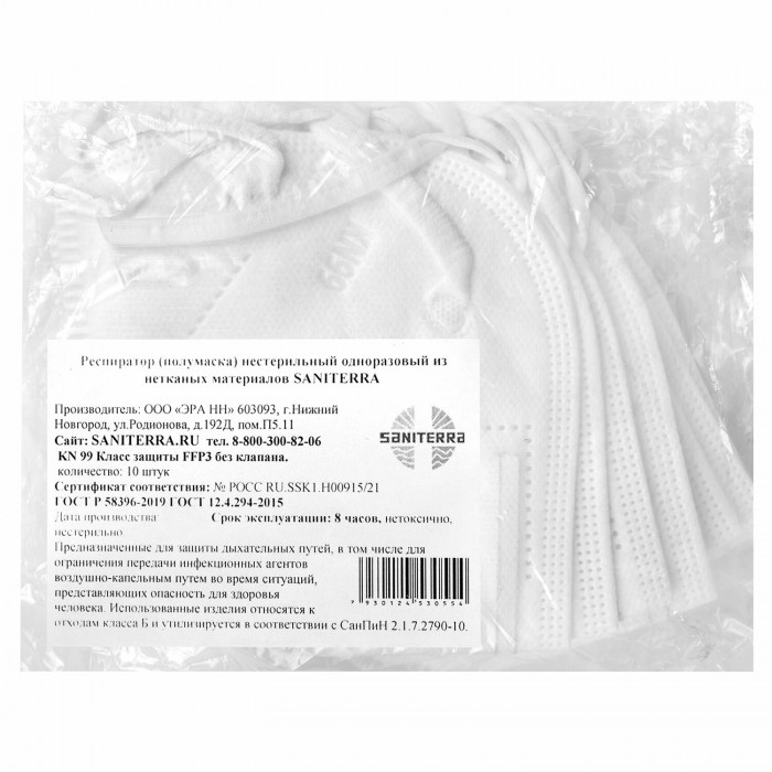 Респиратор противоаэрозольный, высокий класс защиты FFP3, КОМПЛЕКТ 10 шт., без клапана KN-99