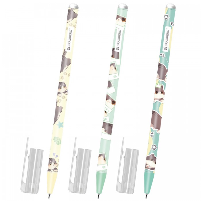 РЕЗЕРВ Ручка стираемая гелевая BRAUBERG CUTE CATS, СИНЯЯ, корпус ассорти, линия 0,35м, 144481