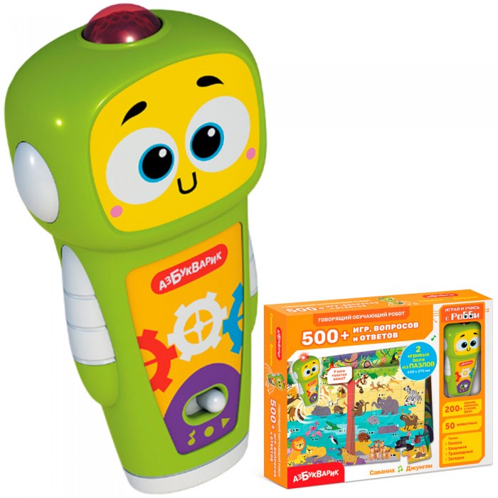 Размер упаковки: 33*26,4*6 см Размер изделия: робот - 5,9*11,2*3,3 см, поле 43*27,5 см Функционал: музыкальная игрушка, свет Упаковка: картонная коробка с окном Страна обладатель бренда: Россия Материал: пластик, картон Комплектация: игрушка - 1 шт., пазл - 2 шт. (24 и 35 эл.) Возраст ребёнка: от 1 года Оригинальная яркая музыкальная игрушка с различными функциями - прекрасный подарок малышу. Она предназначена для активных игр и развития мелкой моторики и координации движений. Яркая расцветка развлечет малыша и привлечет его внимание. В наборе - говорящий робот со сканером штрихкодов и 2 пазла из 24 и 35 элементов; 50 животных, более 500 игр, вопросов и ответов. У робота 18 режимов работы («Голоса зверят», «Песенки и стихи», «Чей голос?», «Угадайка», «Домики и детки», «Песенки-загадки» и др.). Игрушка учит пониманию причинно-следственной связи, помогает тренировать моторику и координацию движений, восприятие формы и цвета. Музыкальная игрушка оборудована кнопками, нажи