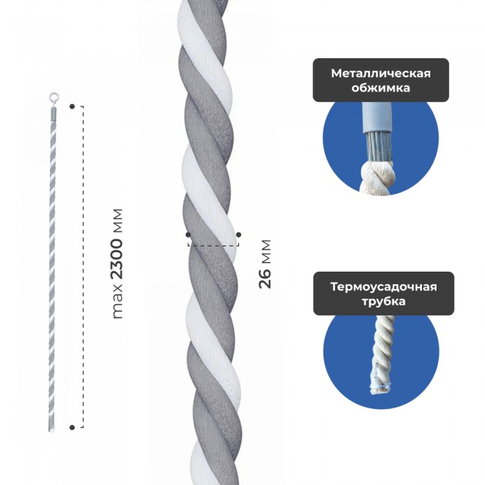 Маленькие акробаты традиционно любят карабкаться по канату, с помощью которого тренируют координацию, выносливость и силу рук. Трехцветный канат из плотного волокна будет прекрасным дополнительным элементом для занятий на ДСК: не занимает много места, надежно фиксируется на перекладине или турнике.