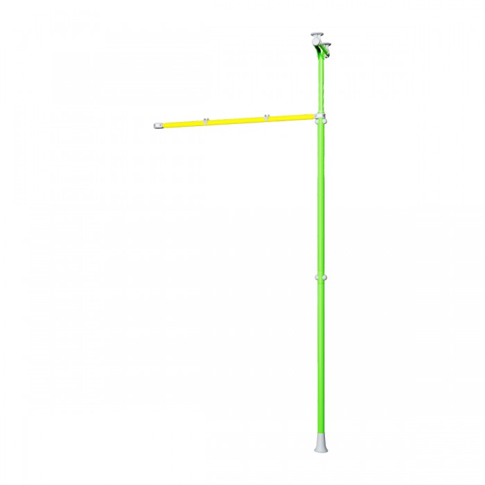 Распорная стойка с перекладиной подойдет в качестве дополнительного элемента к спортивным комплексам, устанавливаемым враспор. На этой перекладине можно разместить навесное оборудование, такое как качели, кольца, трапецию и т.д. Удобство стойки со связью в том, что ее можно расположить с любой стороны от ДСК и под нужным углом. По необходимости, к комплексу можно присоединить несколько стоек.