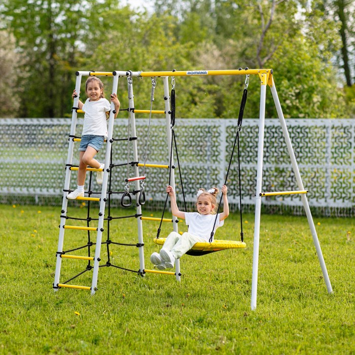 ROMANA «Качели Гнездо» — отличный способ развлечь детвору на даче или в саду загородного дома, когда собирается компания друзей. Допустимая нагрузка — 100 кг. Качели сочетаются с детскими игровыми комплексами ROMANA. Они легко устанавливаются и снимаются с перекладины благодаря карабинам со втулкой. Также качели можно настраивать по высоте для максимального удобства ребенка. ROMANA «Качели Гнездо» — прекрасный выбор, чтобы разнообразить активный отдых на природе!