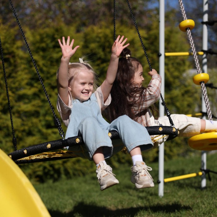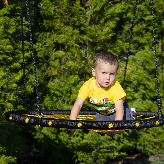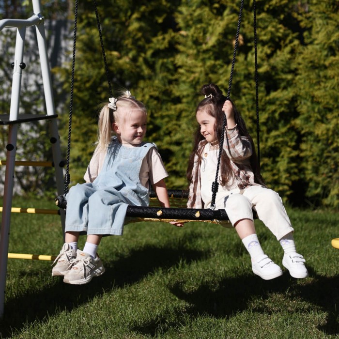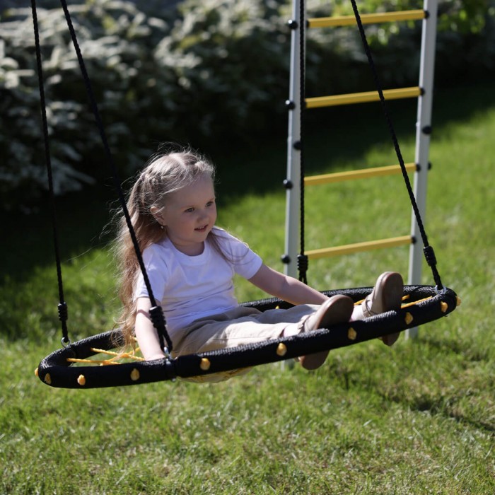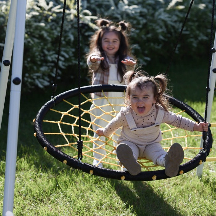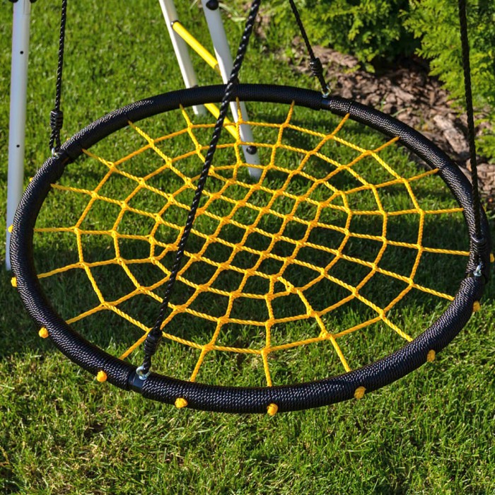 Качели-гнездо – оригинальное дополнение для спортивного комплекса ROMANA. Упругое сиденье выполнено из прочных шнуров, устойчивых к истиранию и растягиванию. Чтобы продлить срок службы и надолго сохранить товарный вид, качели необходимо убирать с комплекса на зимнее время и при неблагоприятных погодных условиях.