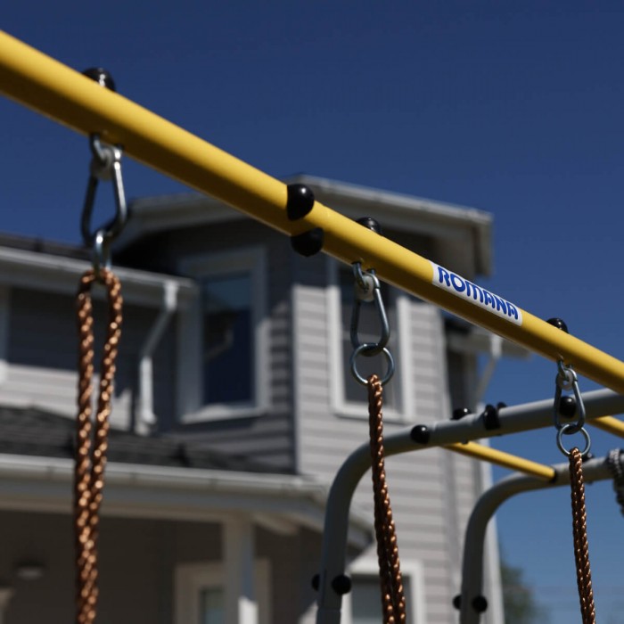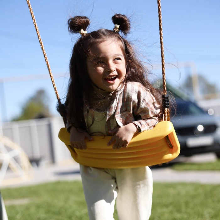 ROMANA «Качели пластиковые» — самый простой способ занять ребенка на свежем воздухе. Они сочетаются с детскими игровыми комплексами ROMANA любой модификации, легко устанавливаются и снимаются с перекладины благодаря специальным карабинам со втулкой.