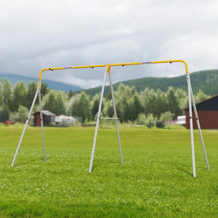 Основное отличие каркаса от R.103.28.04 заключается в том, что к нему можно без ограничений устанавливать до двух различных видов качелей ROMANA, что позволяет создавать более разнообразные и комфортные игровые зоны. Варианты комплектации каркаса можно посмотреть в ассортименте. Конструкция выполнена из стали, покрытой защитной эмалью. Эмаль предотвращает коррозию металла, и наделяет материал устойчивостью к погодным условиям. Не допускается самостоятельная комплектация каркаса вариантами, не представленными в ассортименте.