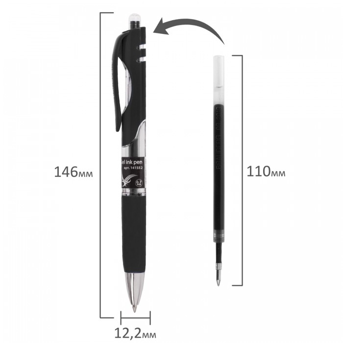 Ручка гелевая автоматическая с грипом BRAUBERG "Black Jack", ЧЕРНАЯ, трехгранная, узел 0,7 мм, линия письма 0,5 мм, 141552