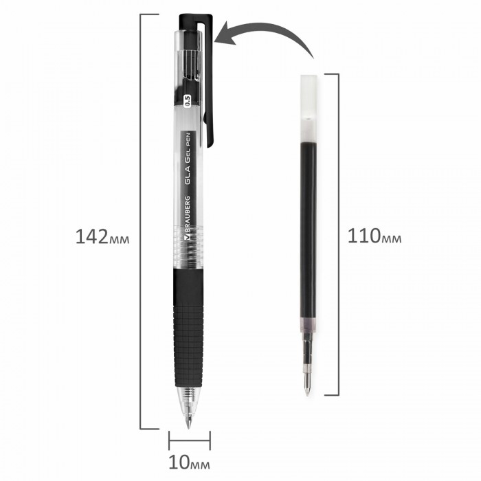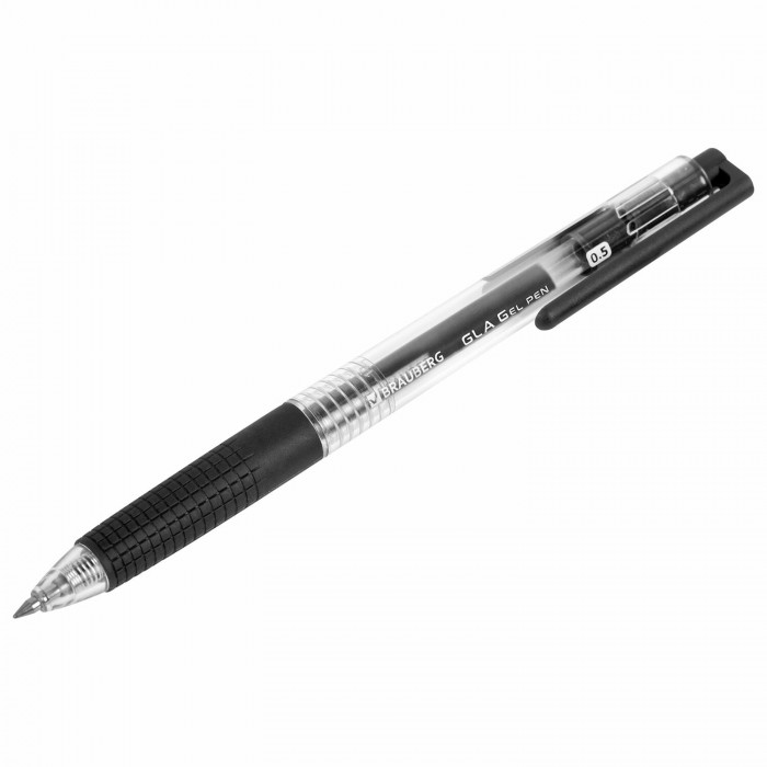 Ручка гелевая автоматическая с грипом BRAUBERG "GLA", ЧЕРНАЯ, стандартный узел 0,5 мм, линия письма 0,35 мм, 144215