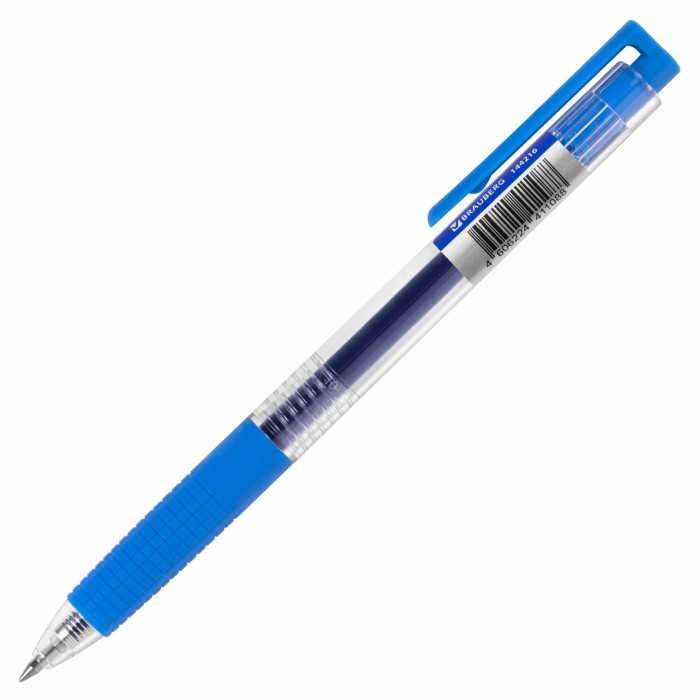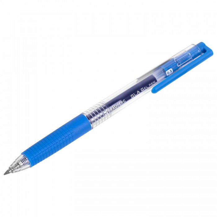 Ручка гелевая автоматическая с грипом BRAUBERG "GLA", СИНЯЯ, стандартный узел 0,5 мм, линия письма 0,35 мм, 144216