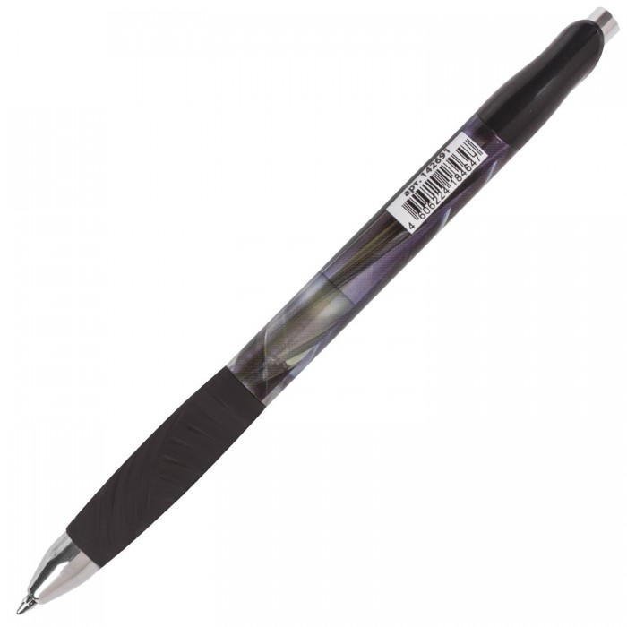 Ручка гелевая автоматическая с грипом BRAUBERG "Jet Gel", ЧЕРНАЯ, печать, узел 0,6 мм, линия письма 0,4 мм, 142691