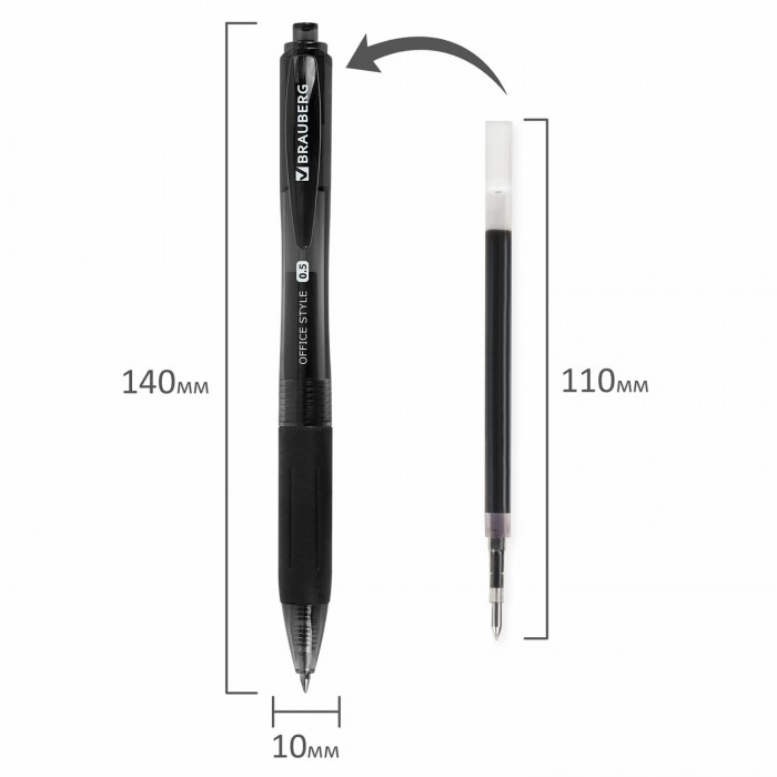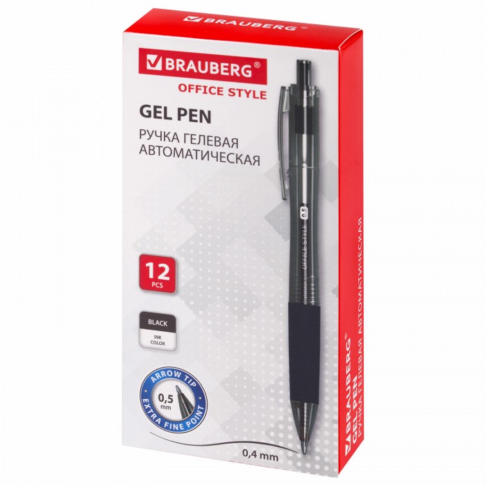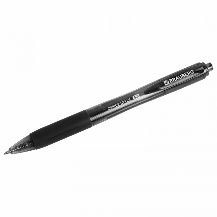 Ручка гелевая автоматическая с грипом BRAUBERG "OFFICE STYLE", ЧЕРНАЯ, линия 0,4 мм, 144123
