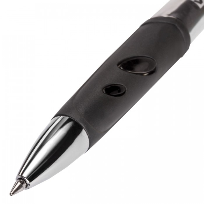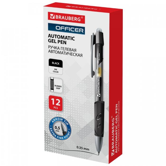 Ручка гелевая автоматическая с грипом BRAUBERG "Officer", ЧЕРНАЯ, корпус тонированный черный, узел 0,5 мм, линия письма 0,35 мм, 141058
