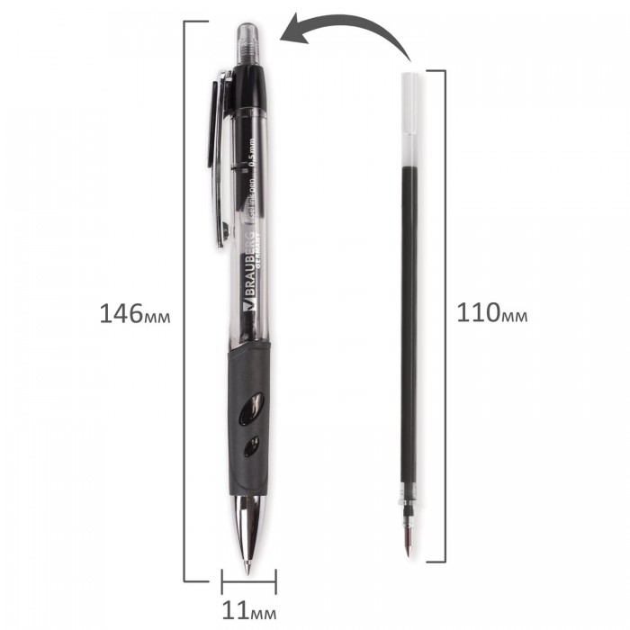 Автоматическая ручка BRAUBERG "Officer" с резиновым держателем обеспечивает комфотное и качественное письмо за счет использования гелевых чернил.