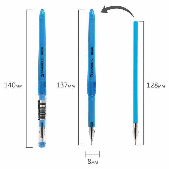 Гелевая ручка BRAUBERG "DIAMOND NEON" с наконечником в виде бриллианта и ярким круглым корпусом неоновых цветов ассорти сразу обращает на себя внимание.