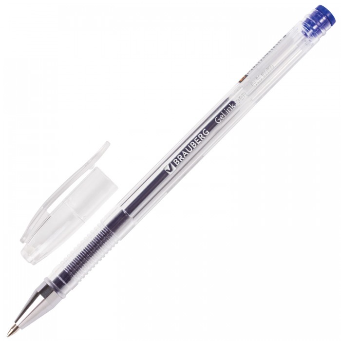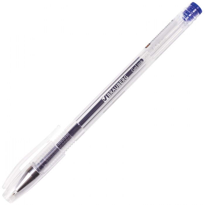 Ручка гелевая BRAUBERG "Jet", СИНЯЯ, корпус прозрачный, узел 0,5 мм, линия письма 0,35 мм, 141019