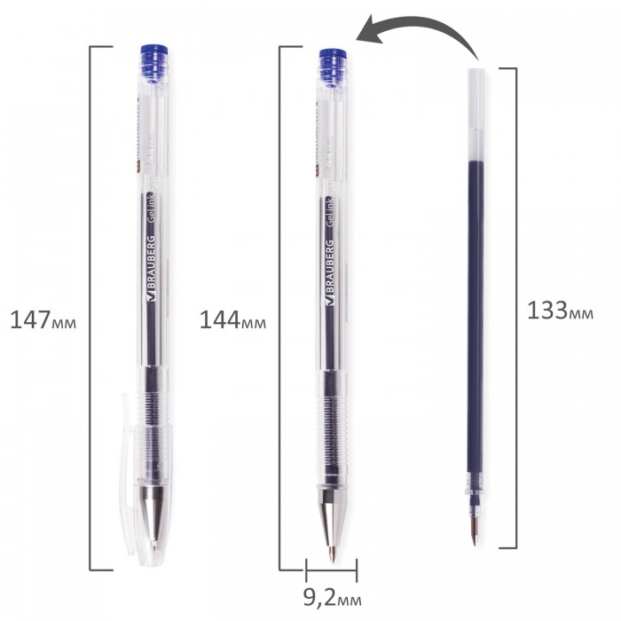 Классическая гелевая ручка BRAUBERG "Jet" с рифленой поверхностью в зоне захвата обеспечивает комфортное и качественное письмо.