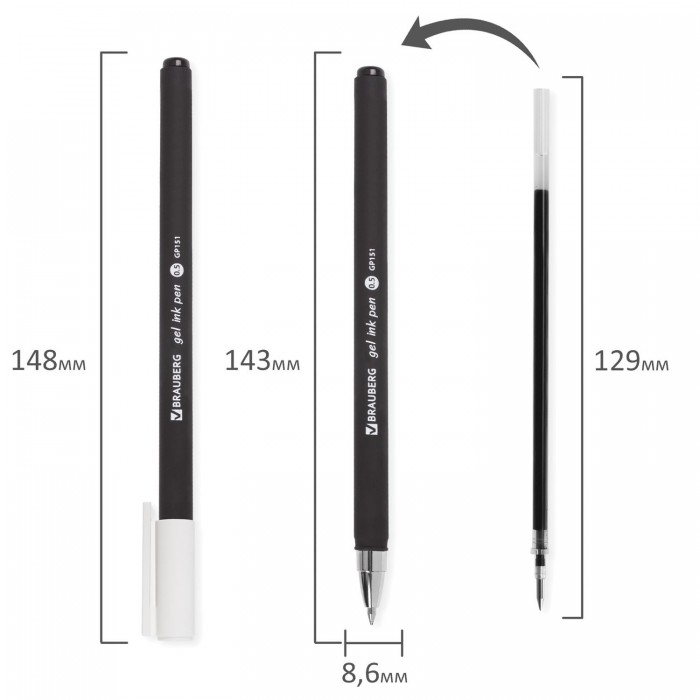 Гелевая ручка BRAUBERG "Matt Gel" с покрытием soft-touch приятна на ощупь и не скользит в руке. Быстросохнущие гелевые чернила и надежный пишущий узел обеспечивают мягкое и комфортное письмо.