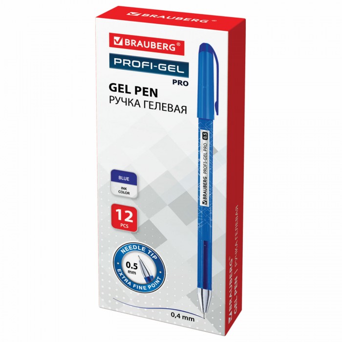 Ручка гелевая BRAUBERG "Profi-Gel PRO", СИНЯЯ, линия письма 0,4 мм, игольчатый наконечник 0,5 мм, печать на корпусе, 144125