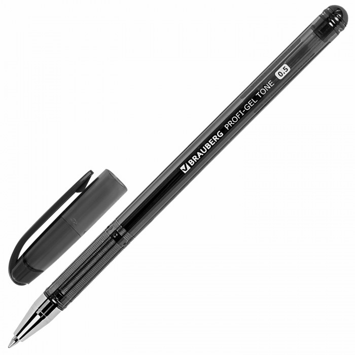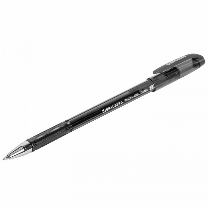 Ручка гелевая BRAUBERG "Profi-Gel TONE", ЧЕРНАЯ, линия письма 0,4 мм, стандартный наконечник 0,5 мм, тонированный корпус, 144127