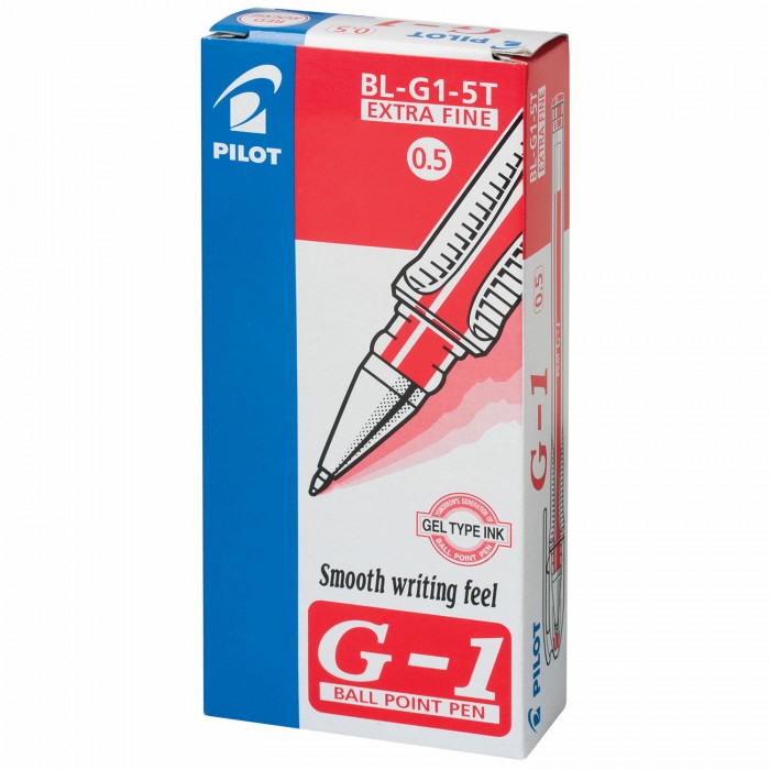 Ручка гелевая PILOT "G-1", КРАСНАЯ, корпус прозрачный, узел 0,5 мм, линия письма 0,3 мм, BL-G1-5T