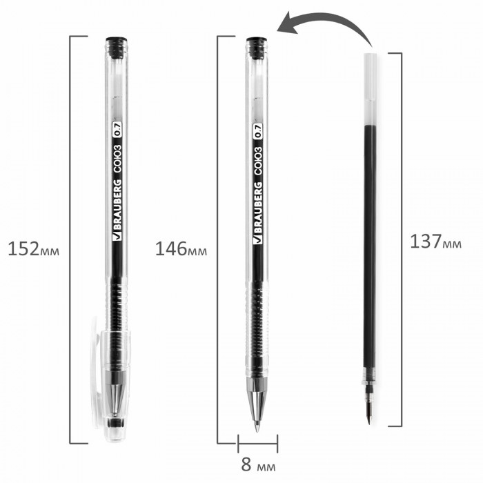 Классическая гелевая ручка BRAUBERG "Союз" обеспечивает комфортное и качественное письмо.