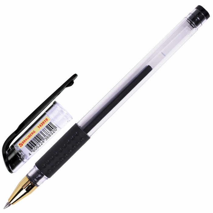 Ручка гелевая с грипом BRAUBERG "EXTRA GT GLD", ЧЕРНАЯ, стандартный узел 0,5 мм, линия 0,35 мм, 143919