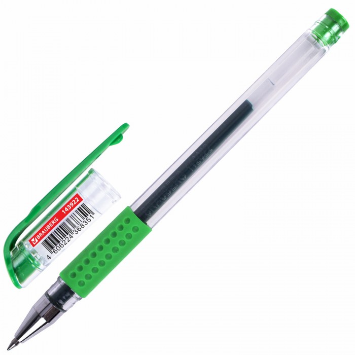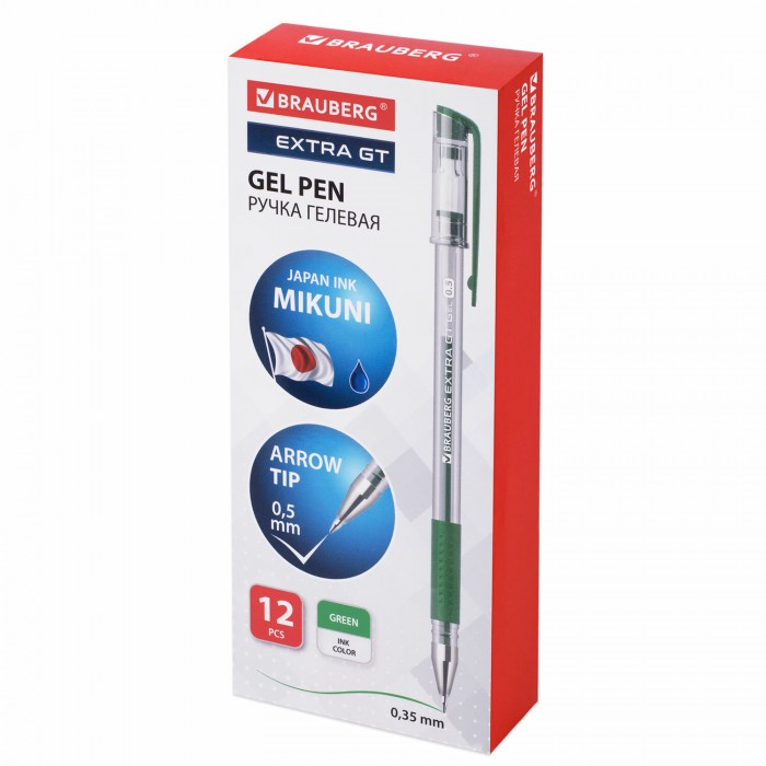 Ручка гелевая с грипом BRAUBERG "EXTRA GT", ЗЕЛЕНАЯ, стандартный узел 0,5 мм, линия 0,35 мм, 143922