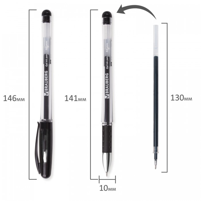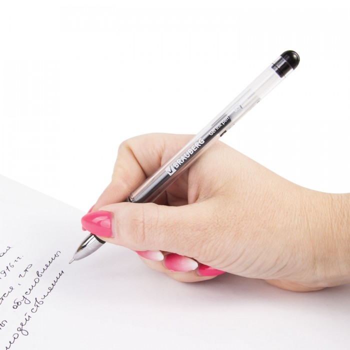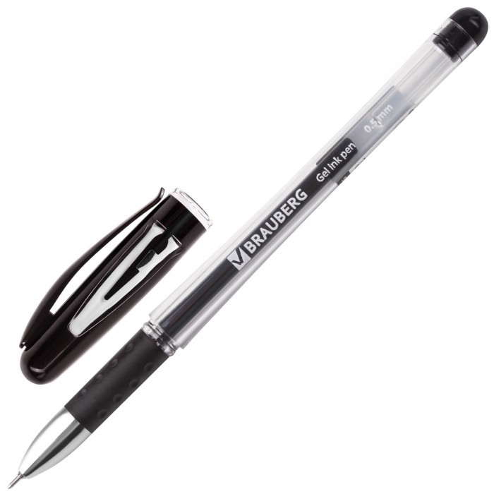 Гелевая ручка BRAUBERG "Geller" с резиновым держателем обеспечивает комфортное и качественное письмо.