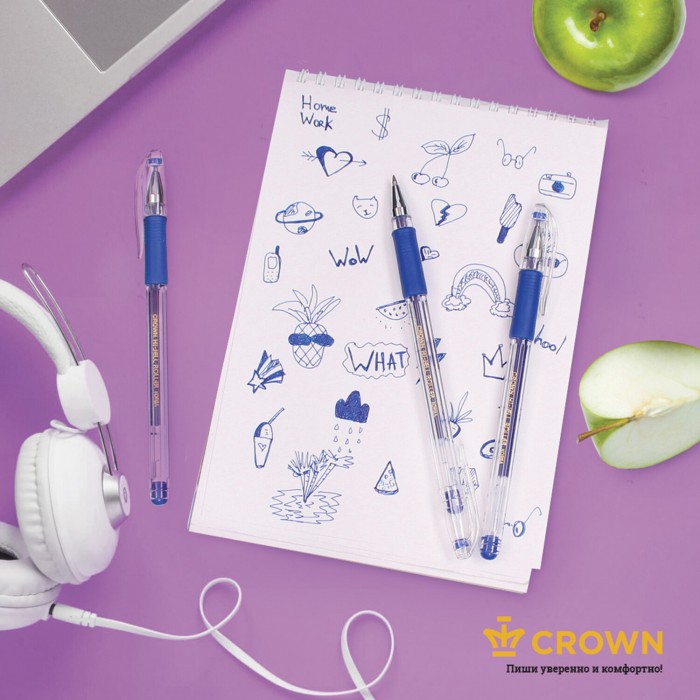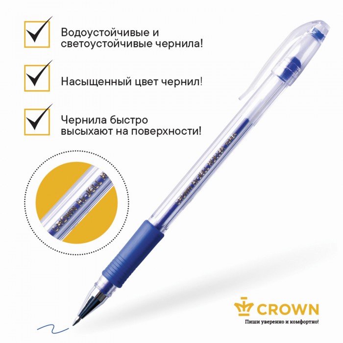 Ручка CROWN "Hi-Jell Needle Grip" содержит гелевые чернила с ярким пигментом на водной основе, которые обеспечивают мягкое и легкое скольжение по любой бумаге.