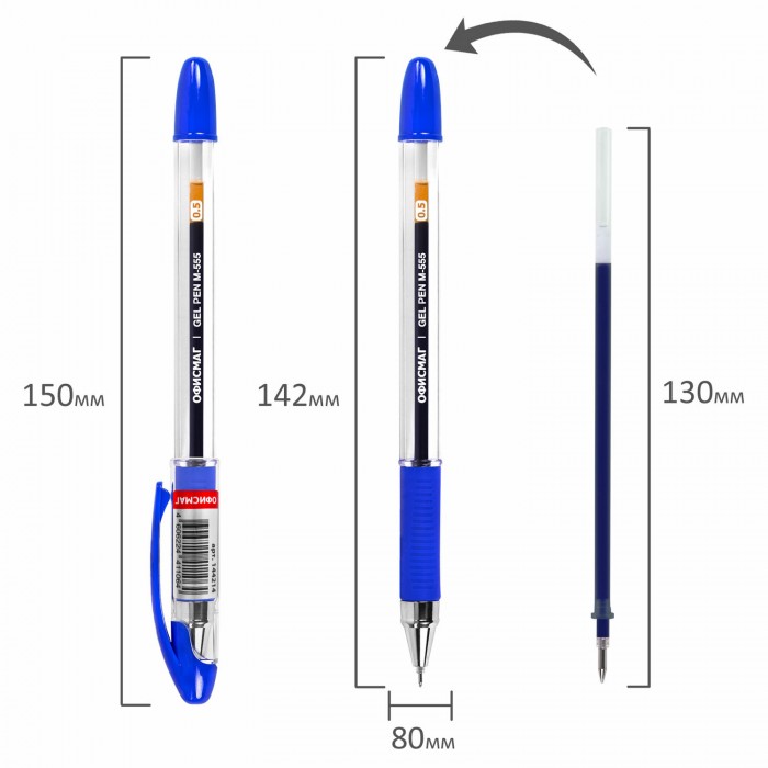 Гелевая ручка ОФИСМАГ "М-555" обеспечивает комфортное и качественное письмо.