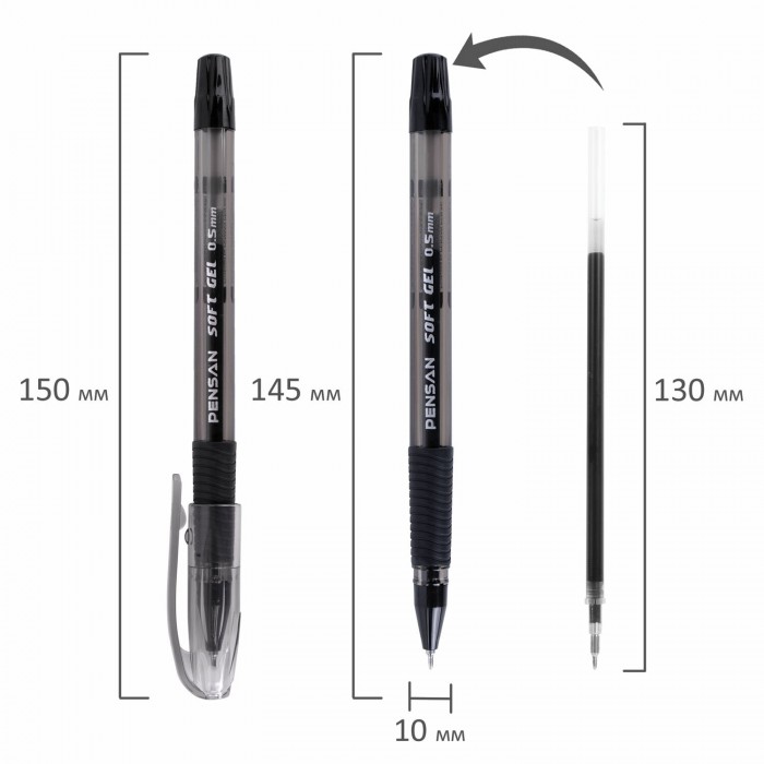 Ручка гелевая с грипом PENSAN "Soft Gel Fine", ЧЕРНАЯ, игольчатый узел 0,5 мм, линия 0,4 мм, 2420/12