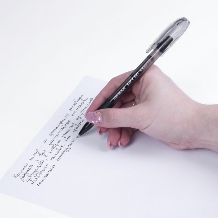 Гелевая ручка PENSAN "Soft Gel Fine" поставляется в классическом пластиковом тонированном корпусе круглой формы с деталями в цвет чернил.