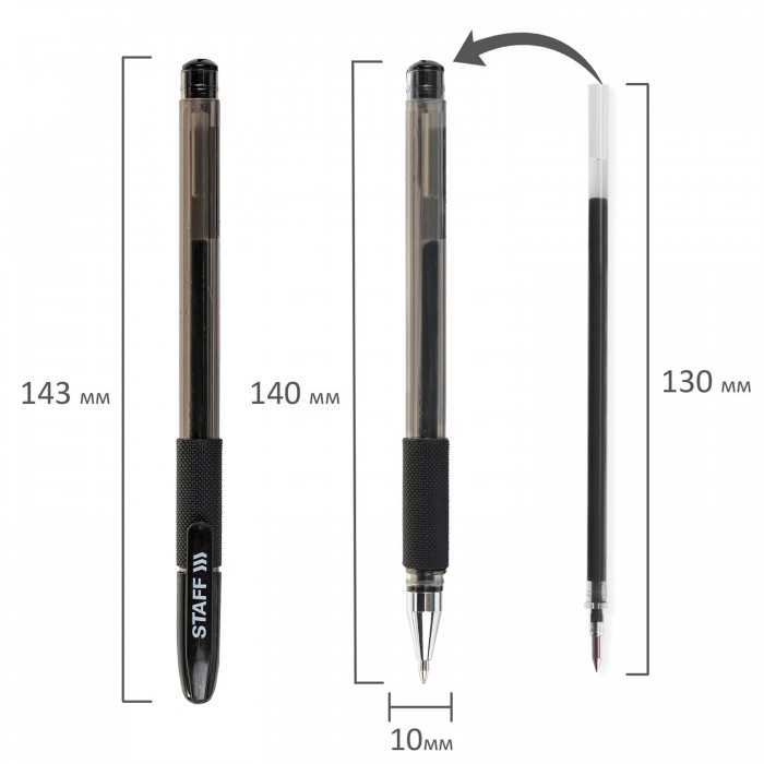 Гелевая ручка с грипом STAFF "Basic" обеспечивает комфортное и качественное письмо.