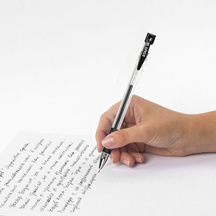 Гелевая ручка с грипом STAFF "Basic Needle" обеспечивает комфортное и качественное письмо.