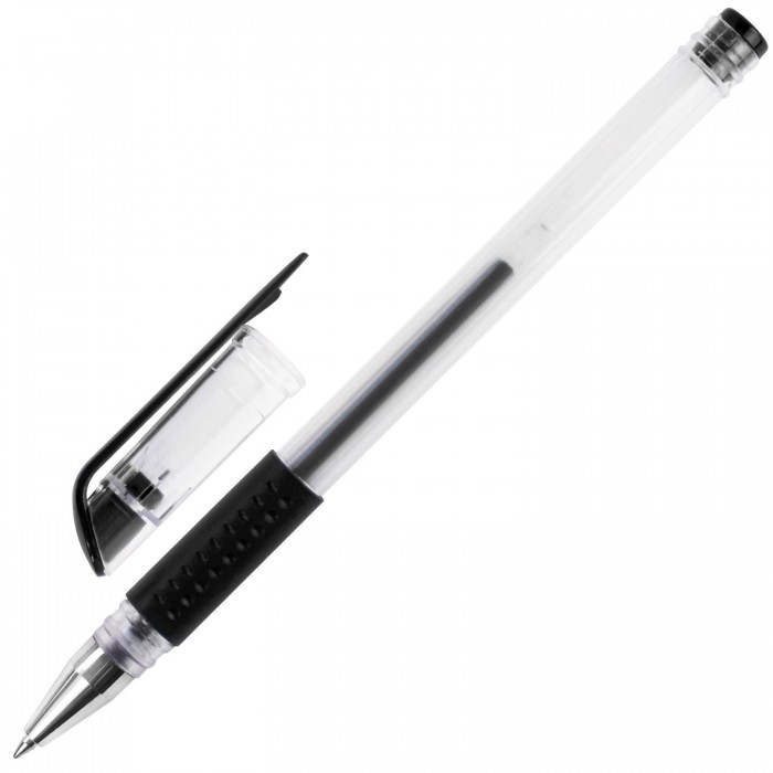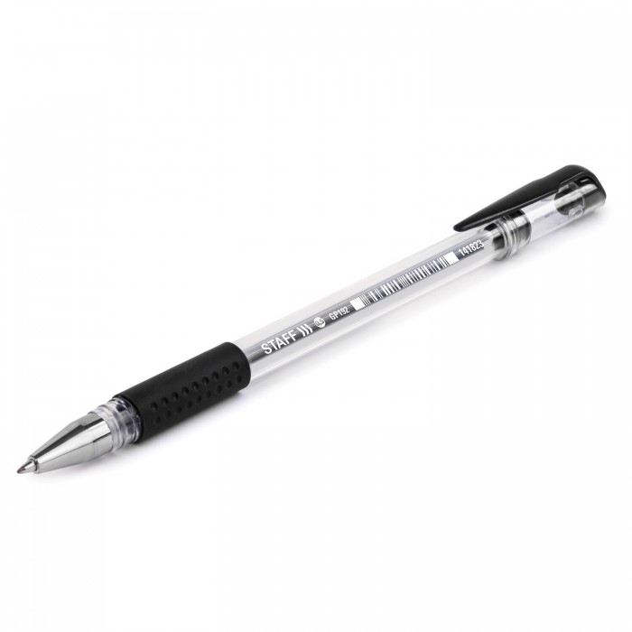 Ручка гелевая с грипом STAFF "EVERYDAY" GP-192, ЧЕРНАЯ, корпус прозрачный, узел 0,5 мм, линия письма 0,35 мм, 141823