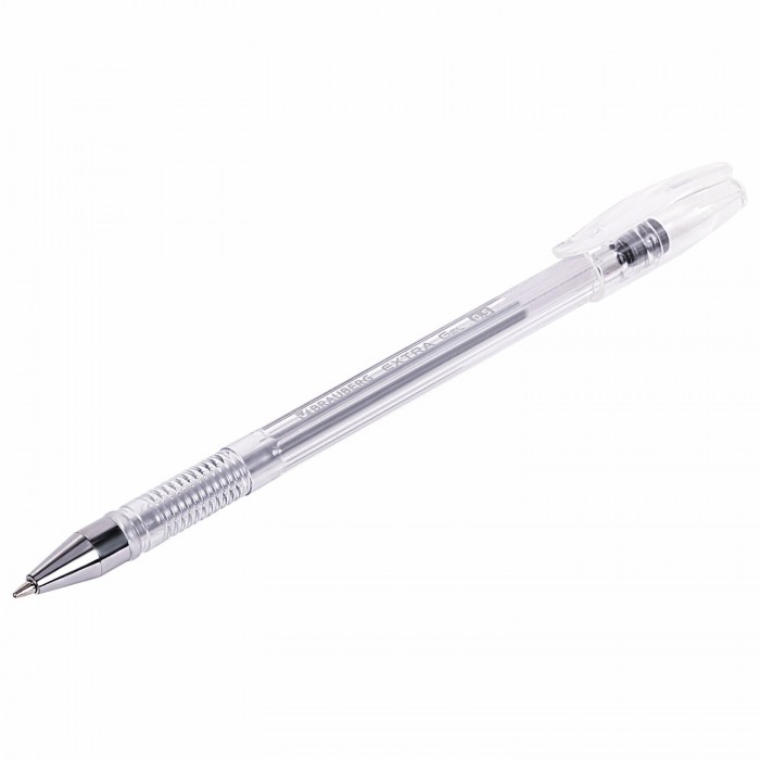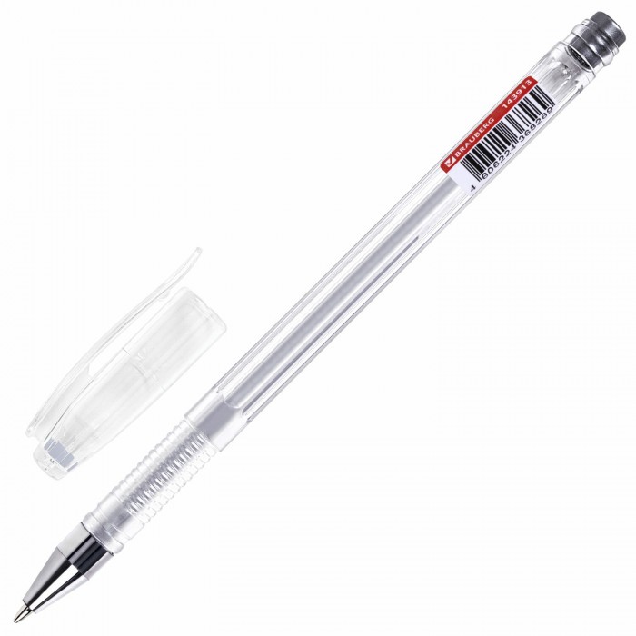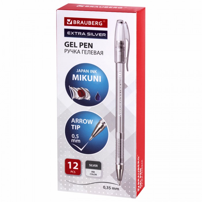 Ручка гелевая СЕРЕБРИСТАЯ BRAUBERG "EXTRA SILVER", корпус прозрачный, 0,5 мм, линия 0,35 мм, 143913