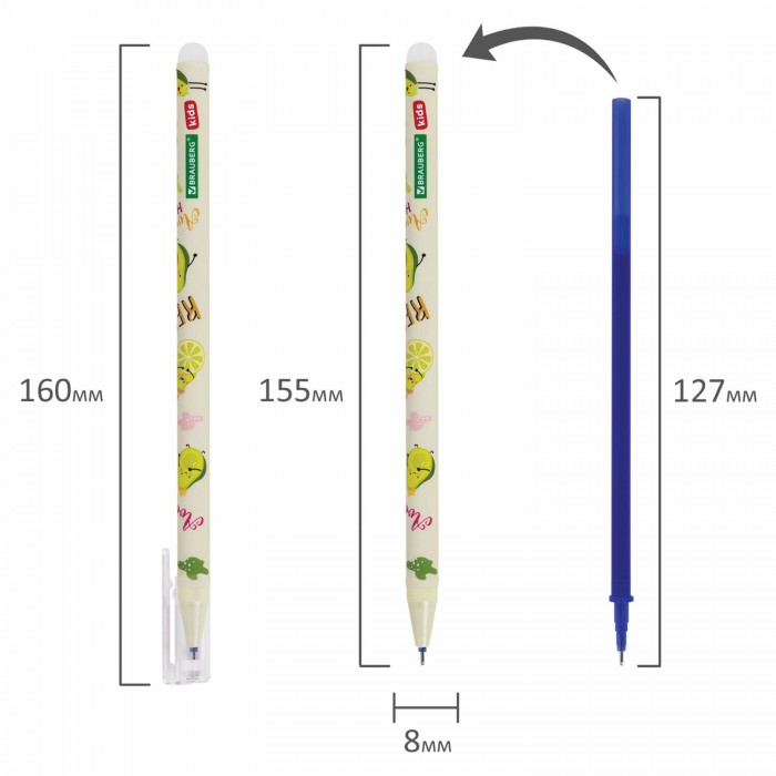 Стираемая гелевая ручка BRAUBERG KIDS "MIX" обладает уникальным сочетанием ярких обесцвечивающихся термочернил, стильного дизайна и высочайшего качества исполнения.