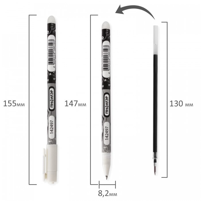 Стираемая ручка ПИФАГОР пишет специальными гелевыми чернилами. Имеется возможность многократного стирания.