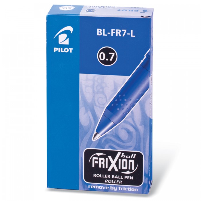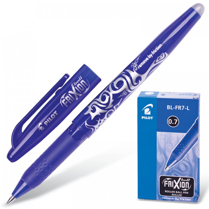 Ручка стираемая гелевая с грипом PILOT "Frixion", СИНЯЯ, корпус синий, узел 0,7 мм, линия письма 0,35 мм, BL-FR-7