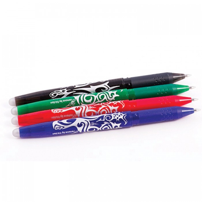 Чернила ручки “Frixion” не исчезают и не стираются, а становятся бесцветными под воздействием температуры путем стирания резинкой, встроенной в ручку, или нагревая лист бумаги выше +60 °С. Написанное можно восстановить при температуре ниже –18 °С.