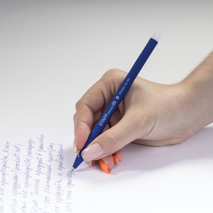 Гелевая стираемая ручка STAFF "Manager" с удобным прорезиненным корпусом (soft-touch). В наборе 5 сменных стержней со специальными чернилами, которые становятся невидимыми при нагревании. Нагрев достигается ластиком, встроенным в корпус ручки.