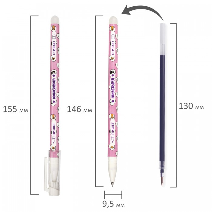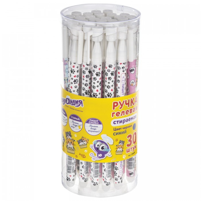 Стираемая ручка ЮНЛАНДИЯ "Котята" пишет специальными гелевыми чернилами, которые становятся невидимыми при нагревании. Нагрев достигается ластиком, встроенным в корпус ручки. Возможность многократного стирания и повторного письма.