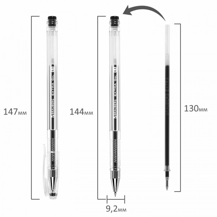 Гелевые ручки BRAUBERG "EXTRA" - набор черных ручек на каждый день для работы и учебы.