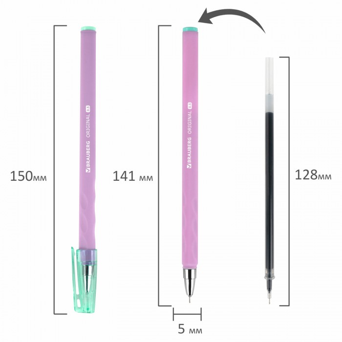 Гелевые ручки BRAUBERG "ORIGINAL" с покрытием soft-touch создают приятные тактильные ощущения и не скользят в руке. Чернила от японского производителя Mikuni оставляют чёткую, насыщенную линию без пробелов на поверхности бумаги.