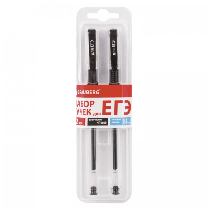 Ручки гелевые "ДЛЯ ЕГЭ" с грипом, ЧЕРНЫЕ, НАБОР 2 штуки, BRAUBERG, узел 0,7 мм, линия письма 0,4 мм, блистер, 142708