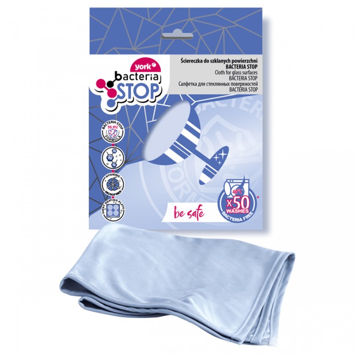 Салфетка для стекла York, "Бактерия стоп", микрофибра, 30*40см, европодвес
