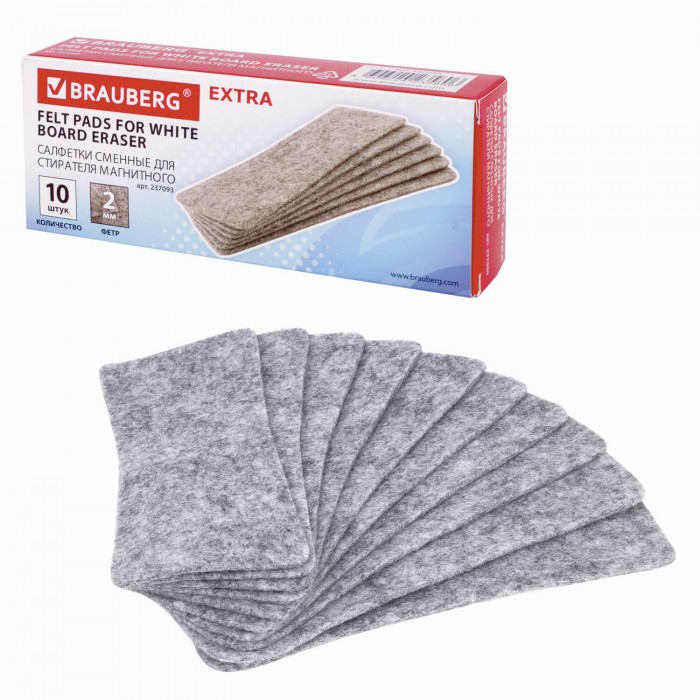 Салфетки сменные для стирателя магнитного BRAUBERG "Extra", 63х150 мм, КОМПЛЕКТ 10 шт., 237093