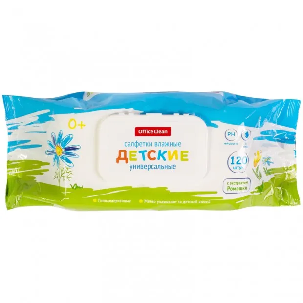 Салфетки влажные OfficeClean "Детские", 120шт., универсальные очищающие, клапан-крышка